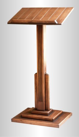 | | Material: Madera de pino Acabado: Lacado natural Medidas: Altura media total de 110 cm. Complementos opcionales: Micrófono, Iluminación, Preinstalación de Sonido, Funda, Anillas, Ruedas, ... Formulario de contacto: