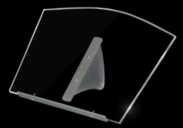 Material: Metacrilato transparente y pieza de apoyo de metacrilato satinado. Reposalibros y unión en aluminio anodizado. Diseño: Formas curvadas Medidas: A MEDIDA Adaptado al material a exponer. Formulario de contacto: